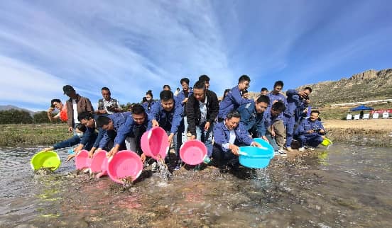 2024年羊曲水电站25万尾珍稀鱼类增殖放流活动现场